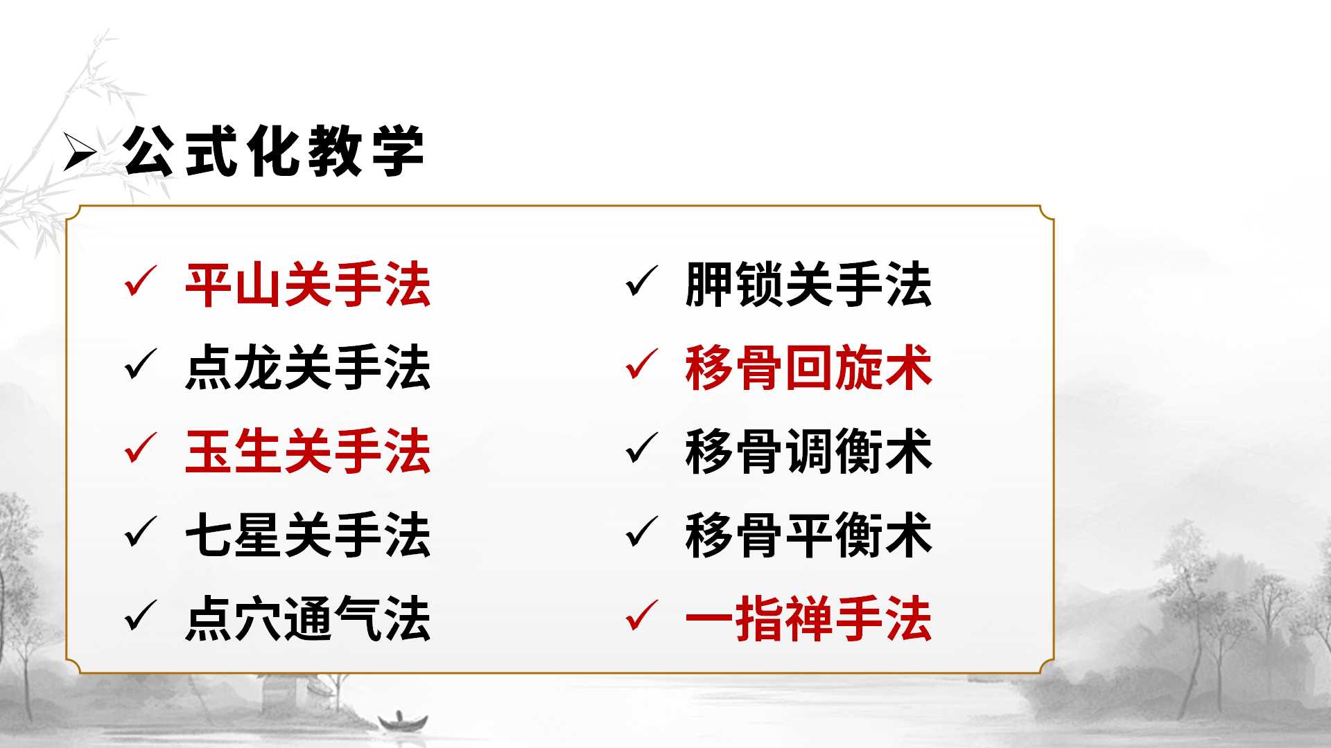 课程手法设计注重安全性与可操作性。操作时主要运用软力、柔力、借力和寸力,力求用轻巧的力道完成调整,减轻操作时的对抗感,降低风险。整个处理过程通常较短,针对许多常见问题,手法调理可在数分钟内完成。