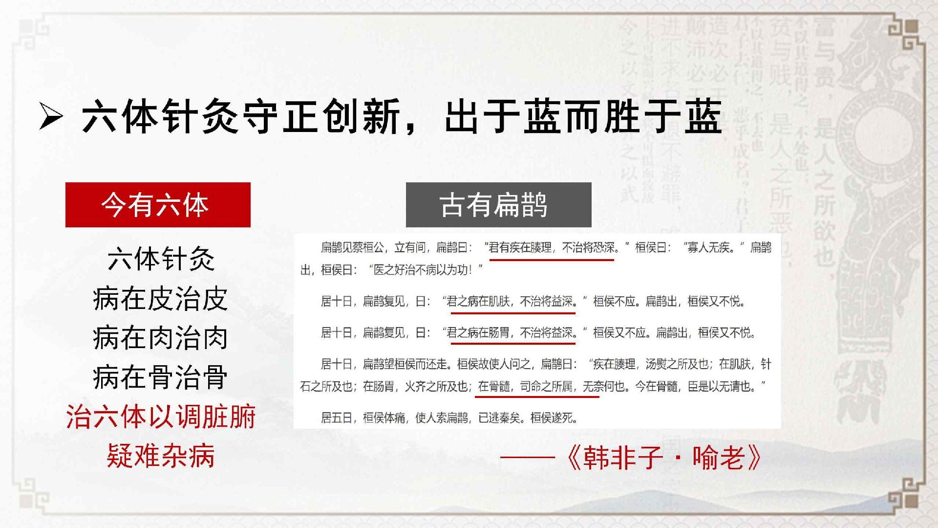 课程理论源于《黄帝内经》,独创“六体”(皮肉脉筋骨神)理论,可精准定位病灶深浅,依据病位匹配刺法,实现调气血、通经络、治脏腑的效果。“六体”分别对应不同身体组织与脏腑,为治疗提供清晰指引。