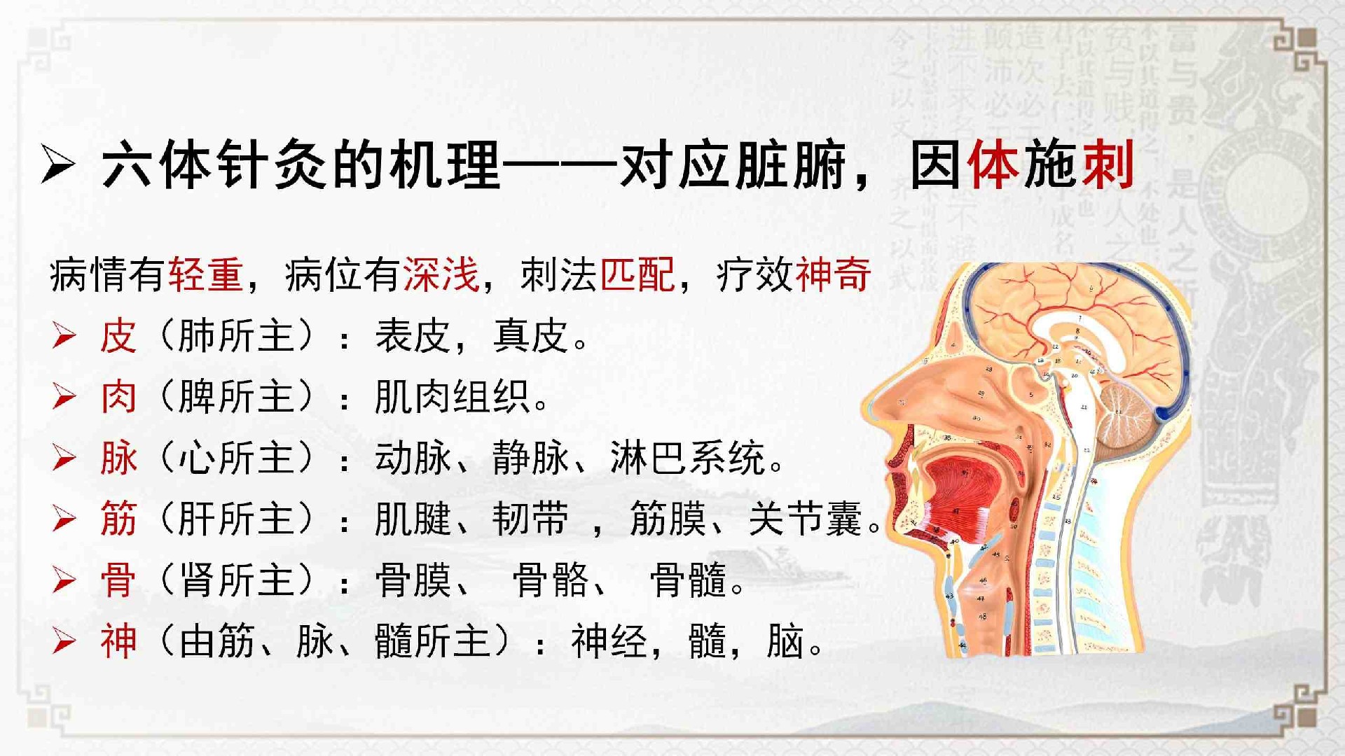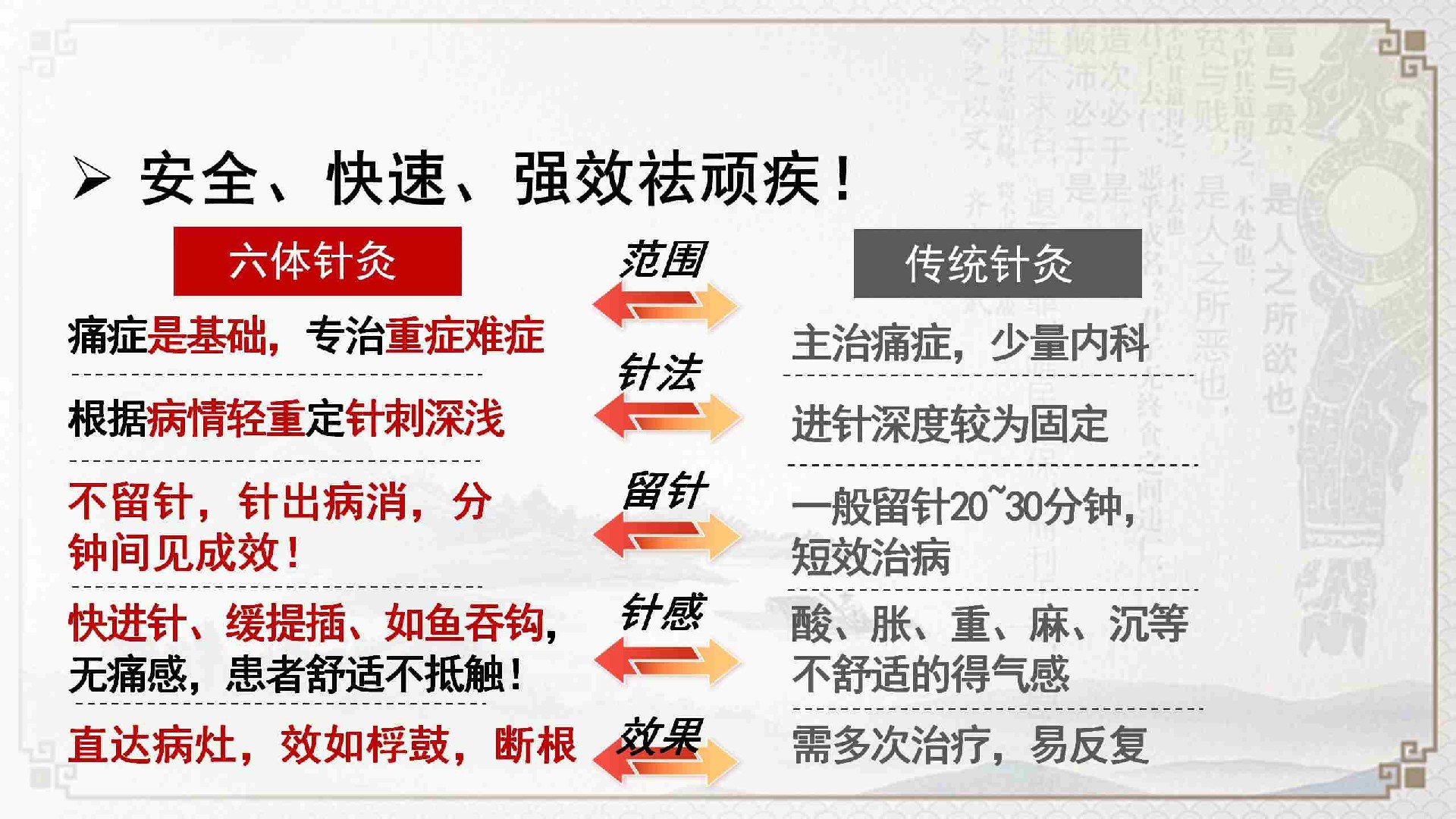 课程的核心在于“六体”辨证与操作体系。学员将学习如何区分问题可能所处的身体层次(例如,皮肤表层、肌肉组织、筋膜韧带等),并学习针对不同层次的特定针刺技巧。课程还包含十二个常用穴位的定位与应用讲解,结合传统配穴思路,形成一套调理方法。与传统针灸操作相比,该课程教授的技术侧重于进针的准确与快速,意在减少操作过程中的不适感。