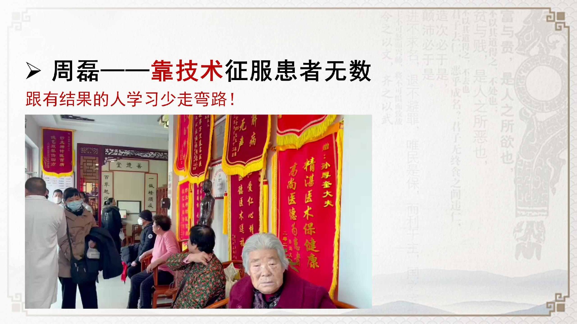 课程主讲老师为周磊。周磊老师是中医副主任医师、副教授,也是“周氏六体针灸”这一技术的传承人,具有市级非物质文化遗产代表性传承人身份。他拥有多年的中医临床实践经验,其个人诊所曾接待大量门诊,其技术应用也涉及多种复杂健康状况的调理。在专业领域,他还担任北京岐济堂中医研究院院长、烟台科技学院非遗指导老师等社会职务,并参与相关学术团体的工作。周磊老师的教学面向广泛,学员涵盖不同年龄与职业背景,他强调技术的实操性与可传授性。